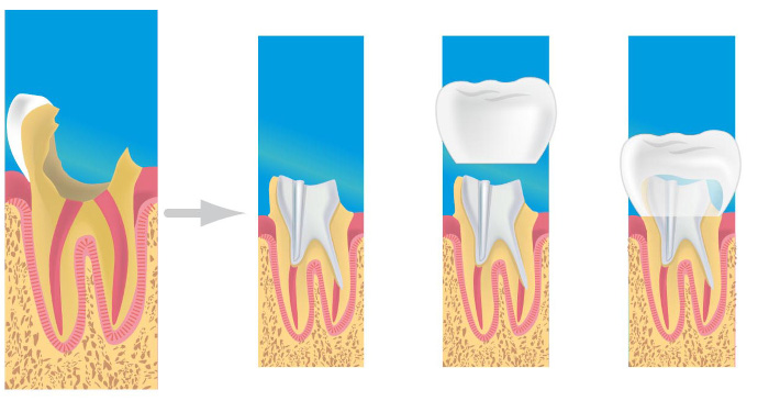 C'est une prothèse dentaire permettant de protéger une dent qui est vivante ou non (dévitalisée). Une couronne reconstitue artificiellement la couronne de la dent délabrée. Elle peut être simple, ou associée à un inlay-core (faux-moignon ancré dans la racine de la dent par un tenon, qui va servir d'ancrage à la couronne). Les deux principaux avantages sont que la dent est protégée... et qu'une couronne bien faite ne se remarque pas !